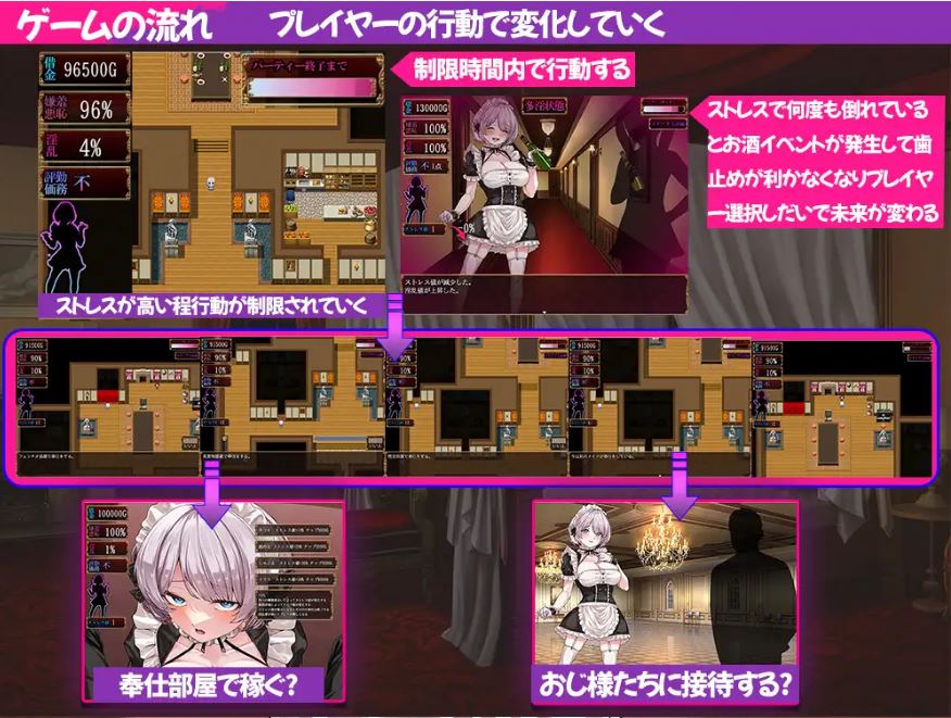 玩家的选择将决定爱丽丝的命运,各种特殊事件会随她的行动触发。