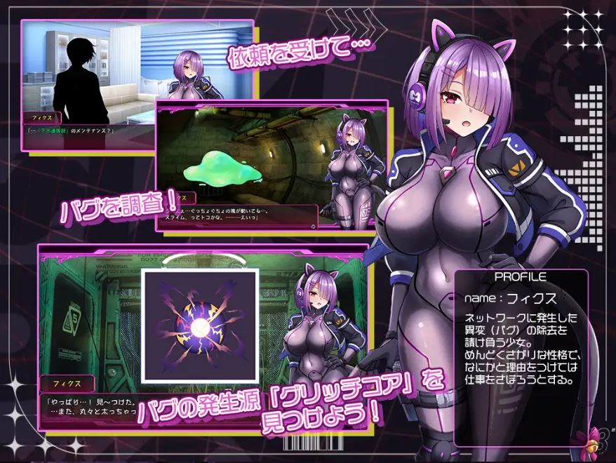 主人公「修复者·特蕾尔」的工作是修复网络故障,但她却终日无所事事,懒散度日……。